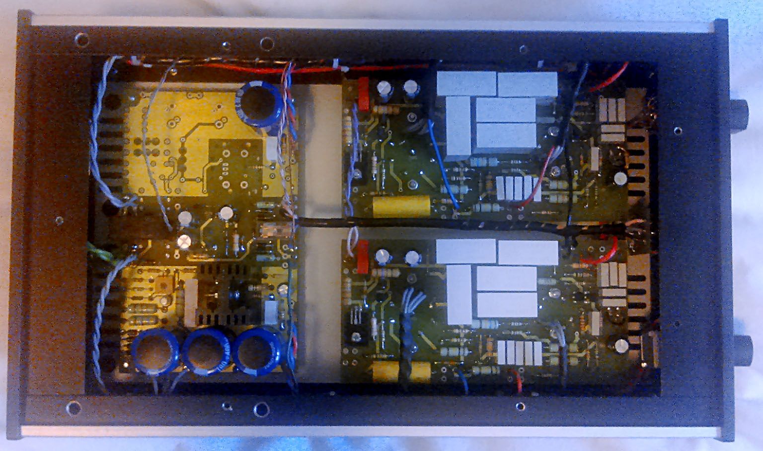 * Pažljivo filtriranje i regulacija napona napajanja – čak i prosječne slušalice lako reproduciraju signale reda mikrovolta, a SE topologije (što je efektivno način rada MT-OTL pojačala) u pravilu nemaju veliko potiskivanje smetnji iz napajanja. Ovakva situacija zahtjeva posebnu pažnju pri osiguravanju kvalitetnog, stabilnog i tihog napajanja sklopova pojačala. U oba pojačala napajanje je višestruko filtrirano, stabilizirano upotrebom niskošumne naponske reference i ponovno filtrirano kako bi se osigurao stabilan napon i stabilna izlazna impedancija napajanja.