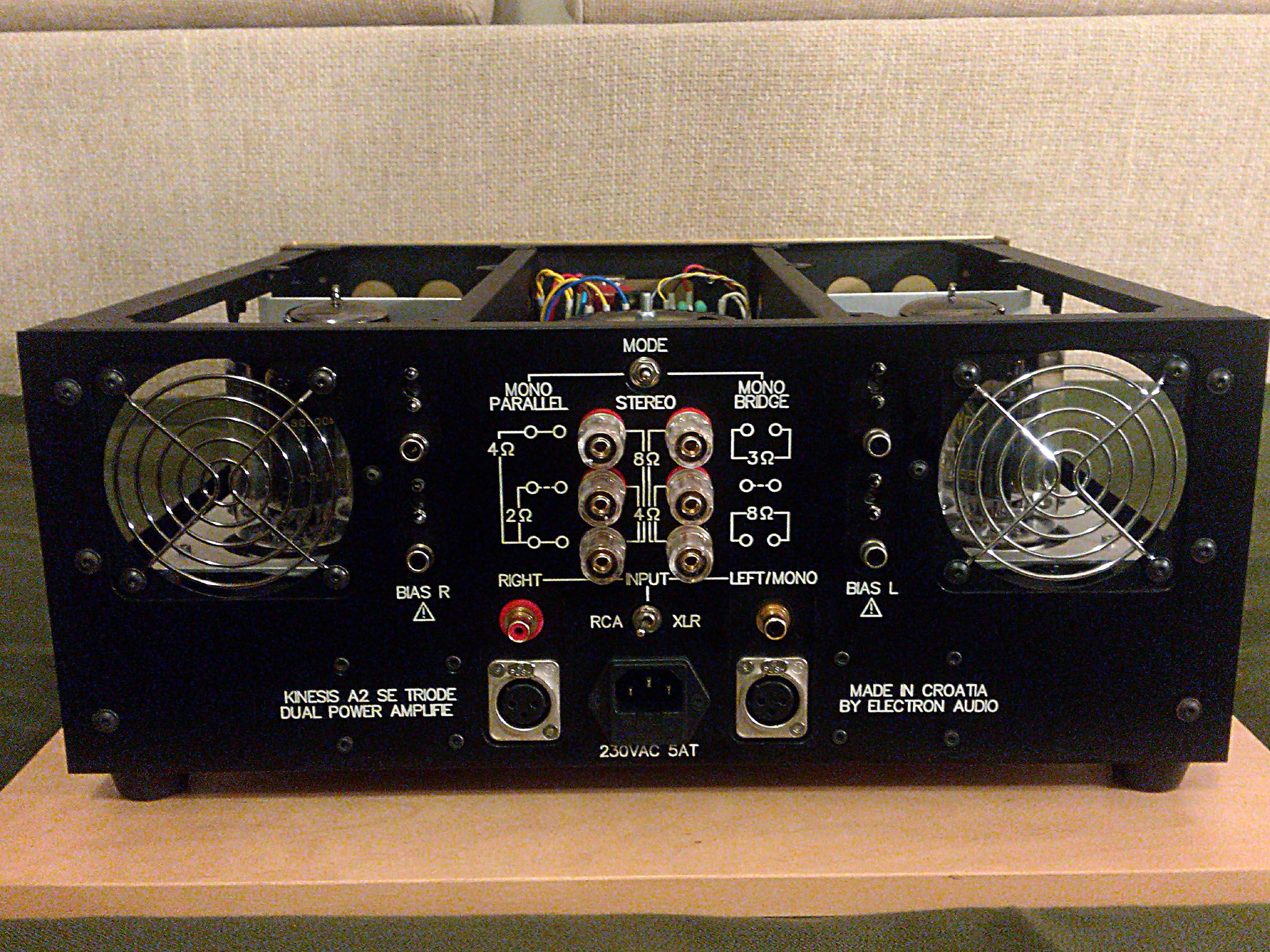Kinesis je rezultat naše potrage. To je dvostruko SET pojačalo koje radi u klasi A2, svaki kanal koristi dvije cijevi u paraleli za izlaznu snagu od 40W po kanalu, i po potrebi se može konfigurirati kao jednokanalno pojačalo s 80W izlazne snage. Širokopojasni izlazni transformatori imaju frekventni pojas proširen za barem oktavu ispod i iynad kompletnog audio područja frekvencija. Ulazni stupnjevi su balansirani, pa se mogu koristiti bilo balansirani XLR ili nebalansirani RCA ulazi. Ukupna termička efikasnost je 22%, što je gotovo dvostruko od tipičnog pojačala ovog tipa, a trajnost cijevi je preko 20000 sati..